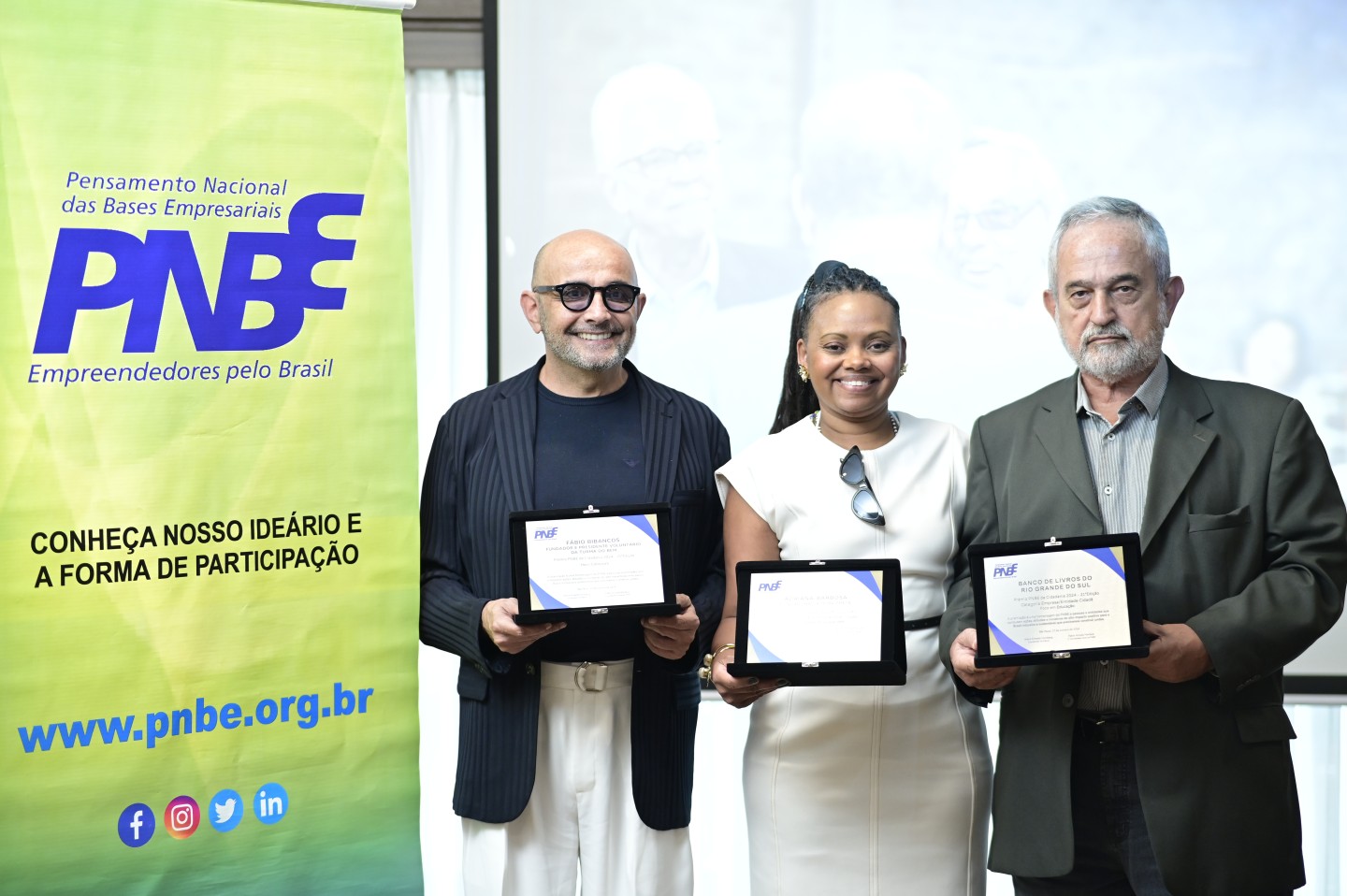 O Banco de Livros, integrante da Fundação Gaúcha dos Bancos Sociais da FIERGS, recebeu, no dia 17 de outubro, o Prêmio Nacional PNBE de Cidadania 2024. O Prêmio foi criado em 1992 pelo Pensamento Nacional das Bases Empresariais para reconhecer ações que transmitem valores e princípios de cidadania. Adriana Barbosa, fundadora da Feira Preta, e Fábio Bibancos, fundador e presidente voluntário da Turma do Bem também foram agraciados.